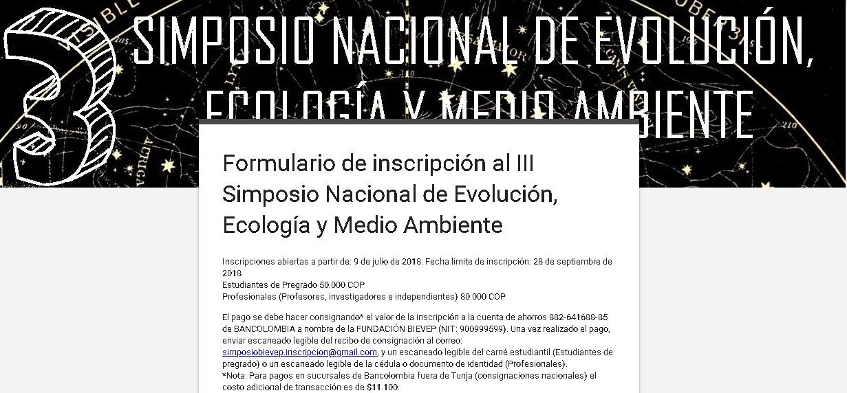 El pago se debe hacer consignando* el valor de la inscripción a la cuenta de ahorros 882-641688-85 de Bancolombia a nombre de la FUNDACIÓN BIEVEP (NIT: 900999599). Una vez realizado el pago, enviar escaneado legible del recibo de consignación al correo: simposiobievep.inscripcion@gmail.com, y un escaneado legible del carné estudiantil (Estudiantes de pregrado) o un escaneado legible de la cédula o documento de identidad (Profesionales).